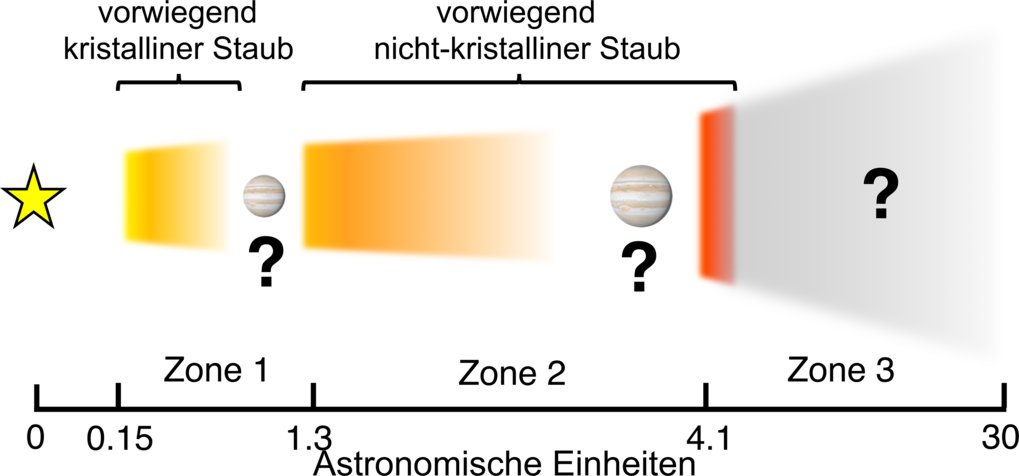 Das Forschungsteam bestimmte die Staubzusammensetzung in der Scheibe bis zu einer Entfernung vom Zentralstern, die dem Abstand des Jupiters von der Sonne entspricht. Was sie dabei gefunden haben, ist den Wissenschaftlern, die die Erde und die Gesteinsplaneten im Sonnensystem untersuchen, sehr vertraut: verschiedene Silikate (Metall-Silizium-Sauerstoff-Verbindungen) und andere Mineralien, die in der Erdkruste und im Erdmantel vorkommen, sowie möglicherweise metallisches Eisen, wie es im Kern des Merkurs und der Erde vorhanden ist. Sollte sich dies bestätigen, wäre diese Studie die erste, die Eisen in einer planetenbildenden Scheibe entdeckt hat.