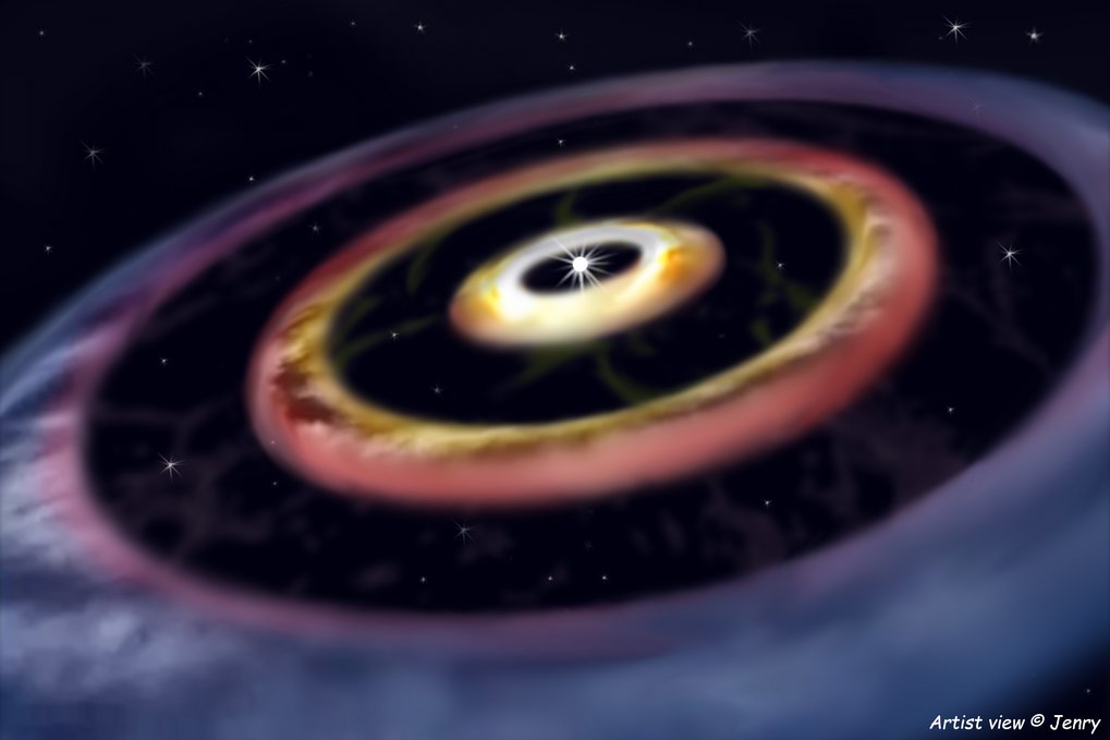 Ein Forscherteam, dem auch Astronomen des Max-Planck-Instituts für Astronomie (MPIA) angehören, hat im Zentralbereich einer planetenbildenden Scheibe eines jungen Sterns eine Struktur mit drei Ringen entdeckt. Sie deutet an, dass sich zwischen den Ringen zwei Planeten mit Jupitermasse bilden. Weiterhin wird die Staubzusammensetzung offenbar durch reichlich feste Eisenkörner ergänzt. Folglich enthält die Scheibe Metalle und Mineralien, die denen der terrestrischen Planeten des Sonnensystems ähneln. Sie bietet somit einen Einblick in Bedingungen vergleichbar derer des frühen Sonnensystems vor mehr als vier Milliarden Jahren, als Gesteinsplaneten wie Merkur, Venus und die Erde entstanden.