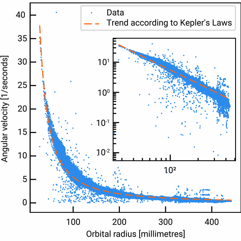 As expected, many of the orbits did not conform to Kepler’s first law, which states that celestial objects follow elliptical paths. Funnel-shaped experimental setups generally tend to produce spiral or non-closed trajectories. This limitation, however, can be mitigated by appropriately scaling the experimental design. The next version of the experiment will therefore be significantly larger.