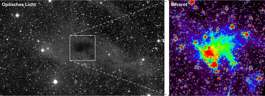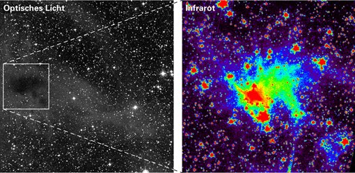 Die betreffenden Molekülwolken sind für sichtbares Licht undurchsichtig. Man sieht sie mit herkömmlichen optischen Teleskopen als dunkle Flächen, die dahinterliegende Sterne verdecken. Für Infrarotlicht dagegen sind die Wolken durchsichtig, und zwar umso besser, je länger die Wellenlänge des Infrarotlichts ist. Mit Nahinfrarotlicht (Infrarotlicht kürzester Wellenlänge) können z.B. junge Sterne innerhalb von Molekülwolken nachgewiesen werden. Mit Ferninfrarotlicht (Infrarotlicht längster Wellenlänge) und Submillimeterstrahlung (Wellenlänge noch größer als bei Ferninfrarot) lässt sich die Wärmestrahlung der Wolke nachweisen, was Rückschlüsse auf die physikalischen und chemischen Eigenschaften der Wolke erlaubt. Die hier geschilderten Ergebnisse erlauben neuartige Beobachtungen im Mittelinfraroten.