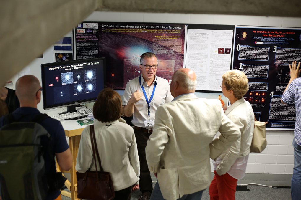 Some space telescope parts are actually made in Heidelberg! Here: explaining the capabilities of the James Webb Space Telescope (JWST), to which MPIA researchers and engineers are contributing parts and know-how.
